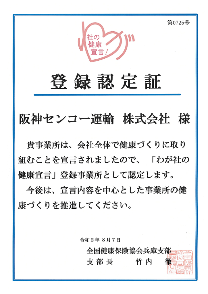 社員の健康維持・増進の為、阪神センコー運輸株式会社は