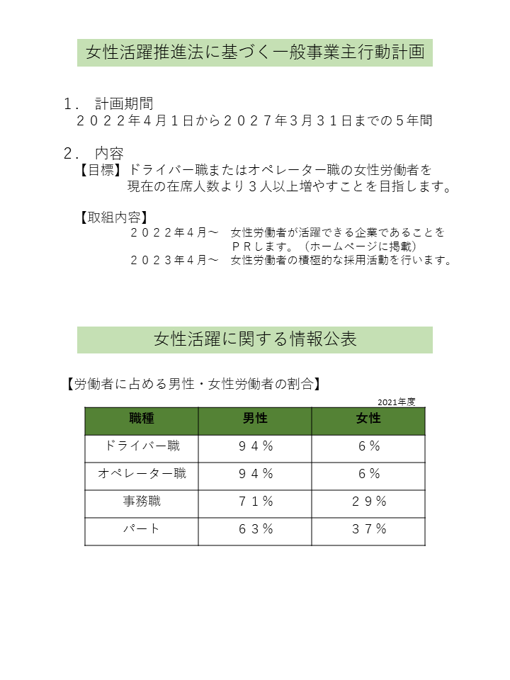 2022年4月1日より、女性活躍推進法に基づく以下の計画に取り組みます。